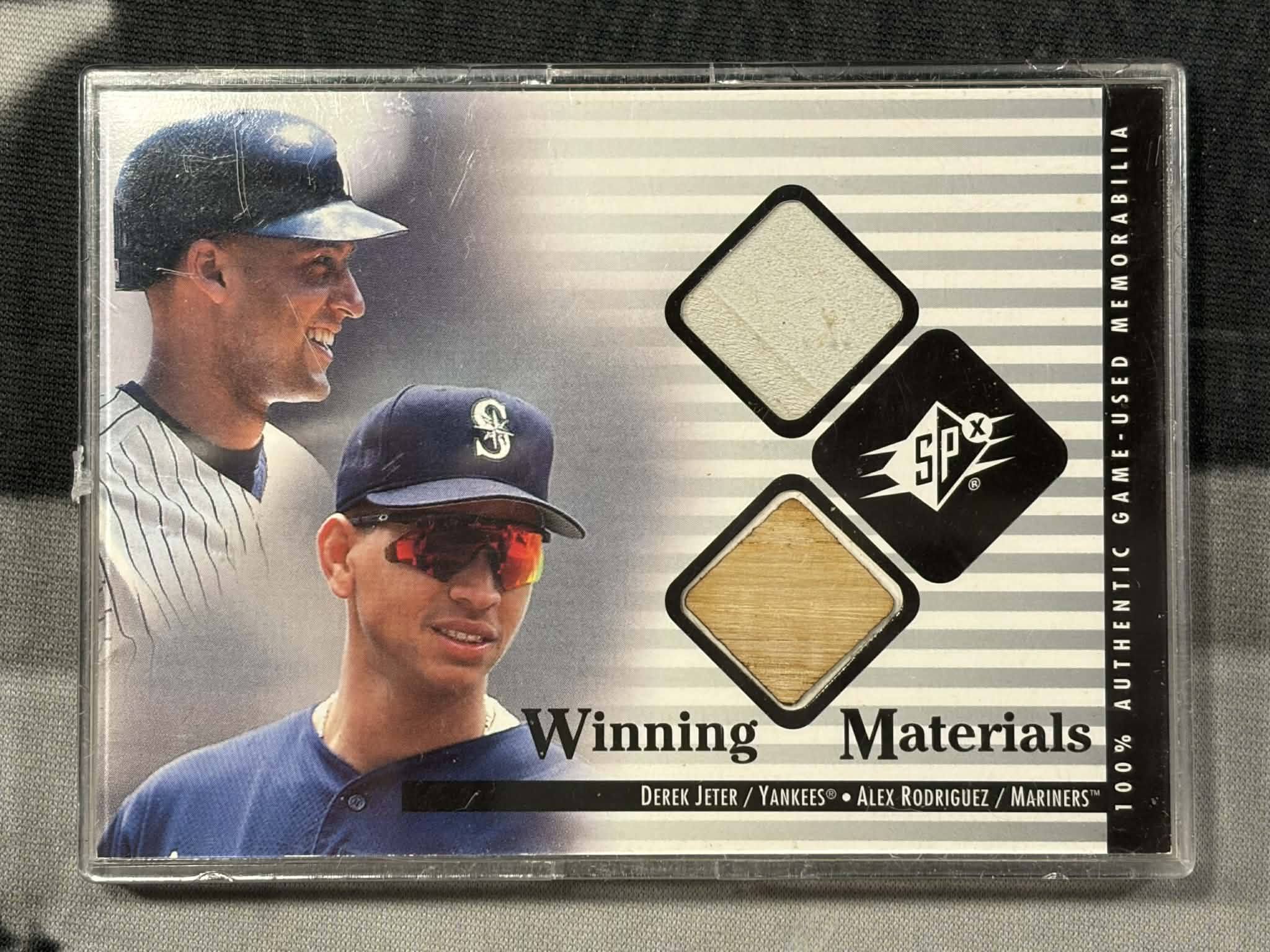 2000 Upper Deck Winning Materials Derek Jeter/ Alex Rodriguez player used pieces. Edging issue on back.