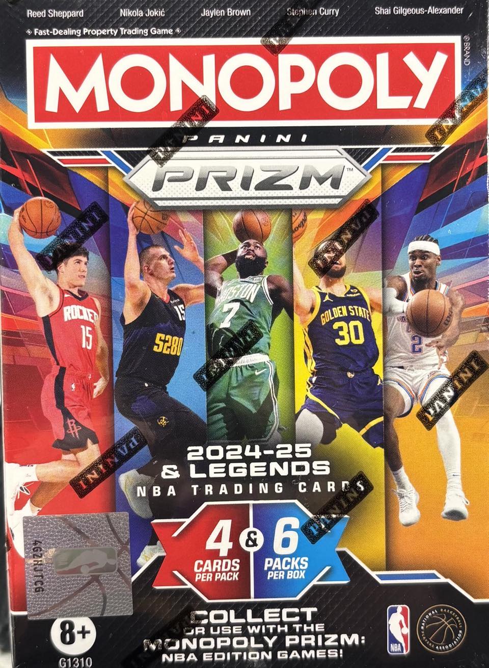 • MONOPOLY PANINI PRIZM 2024-25 AND LEGENDS NBA CARDS: This Monopoly Panini Prizm: 2024-25 & Legends NBA Trading Cards Booster Box includes 24 NBA trading cards, featuring 2024-25 season stars and NBA legends