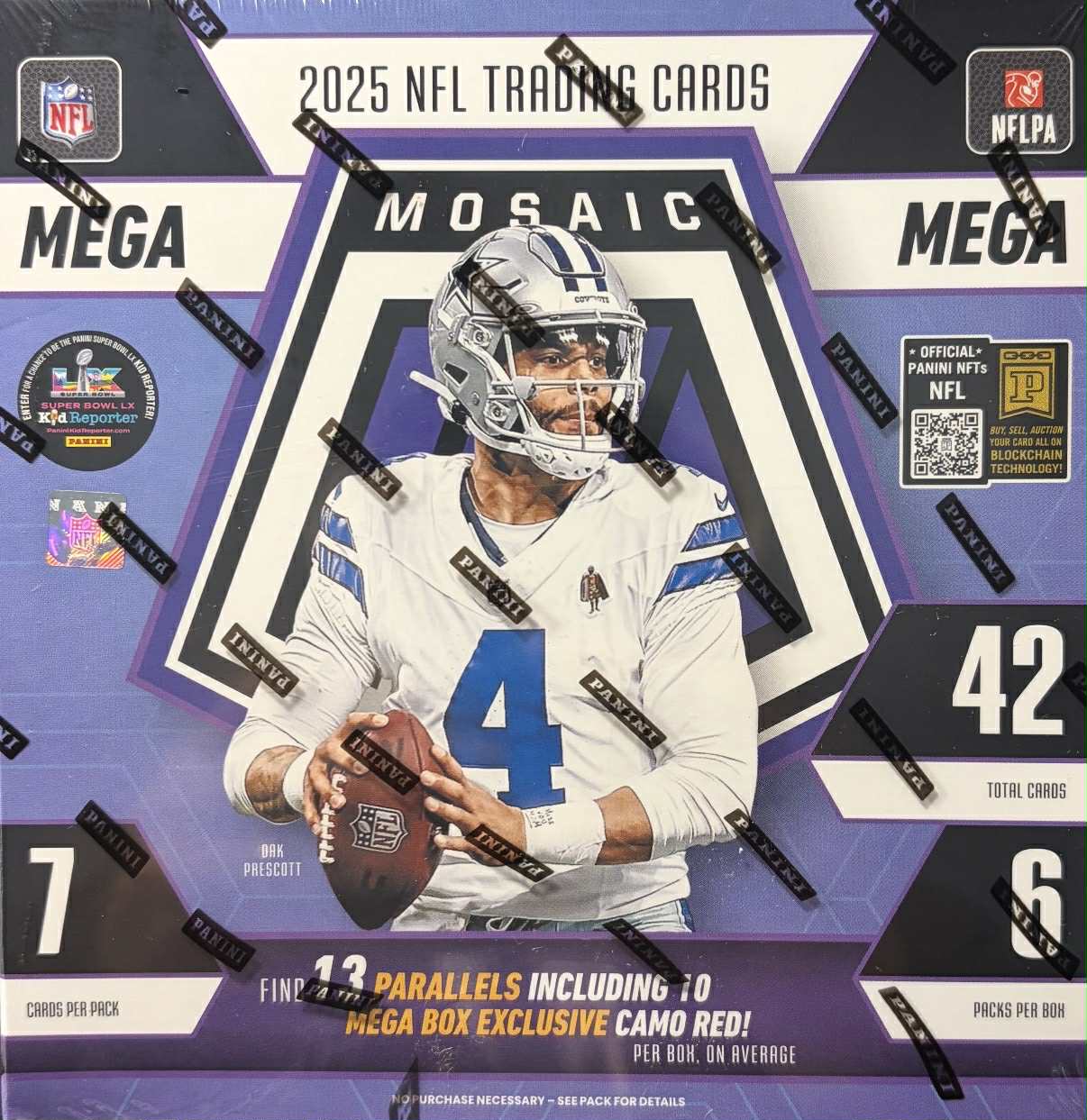 – True to its vibrant legacy, 2025 Mosaic Football delivers one of the most colorful, powerfully paralleled base sets of the year, featuring the game’s biggest current stars, most promising rookies and most iconic legends!